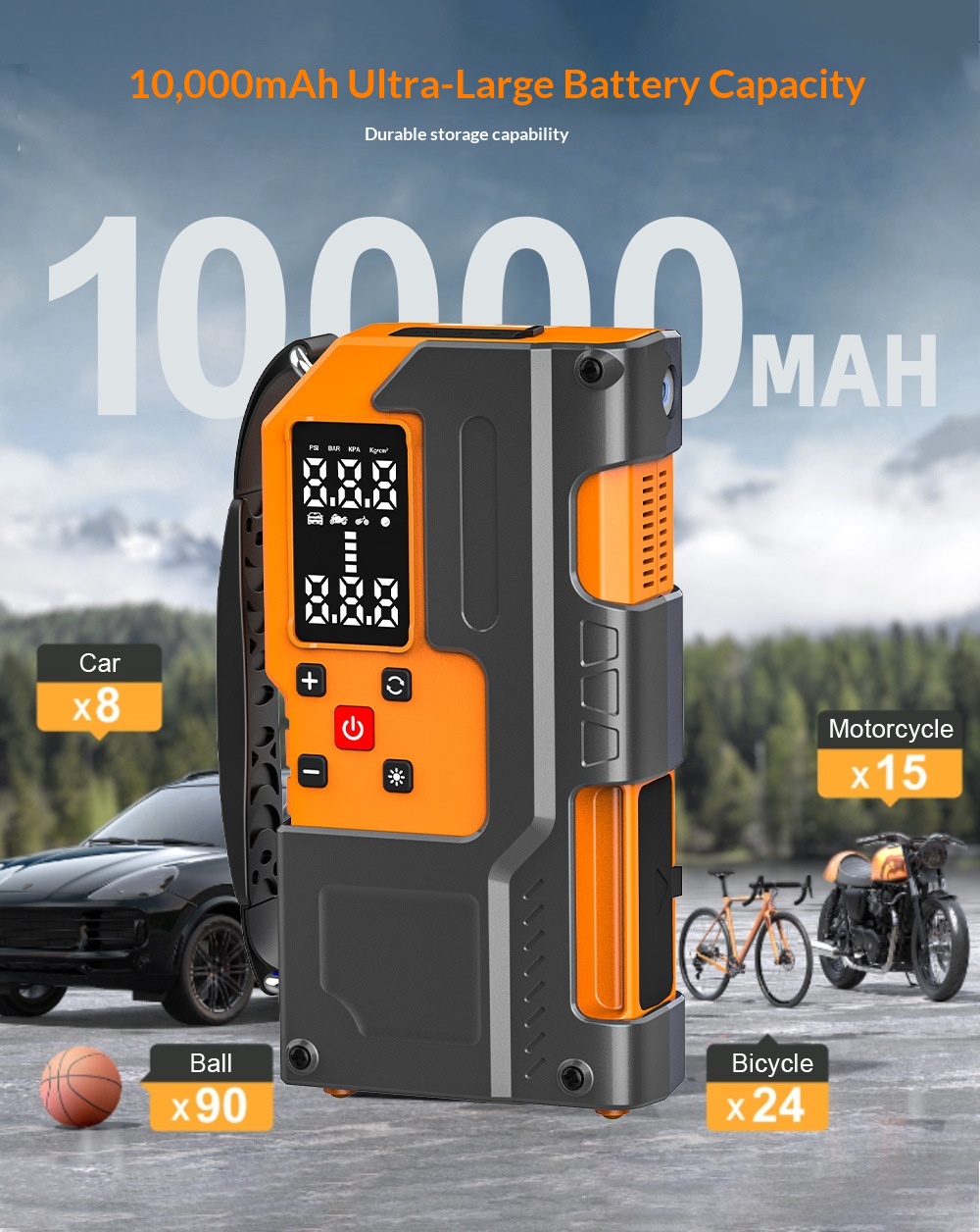 Color options: car air pump and emergency jump starter combo